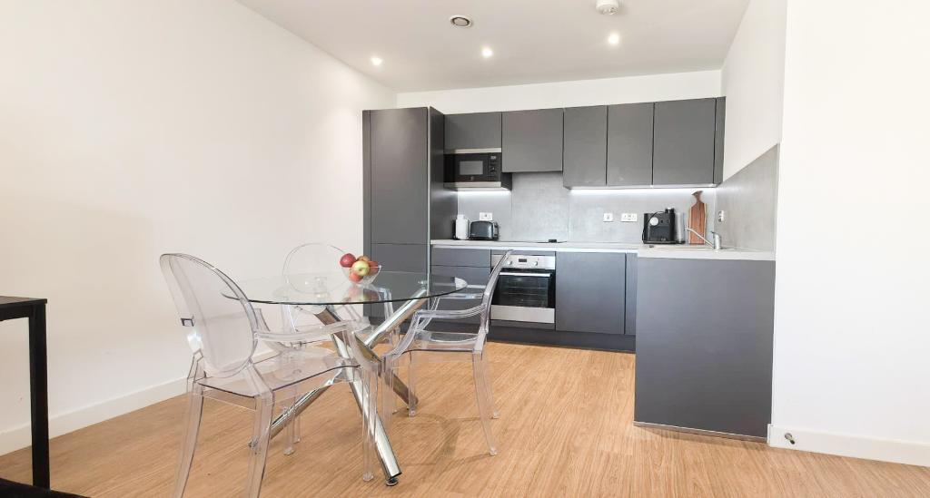 Stylish one bedroom apartment on the seventh floor, entrance hallway, open plan kitchen/dining area and lounge leading to spacious south facing balcony. Bedroom and bathroom.