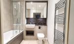6' 10'' x 6' 6'' (2.1m x 2m) 3-piece bathroom suite consisting of panelled bath with mixer tap, glass screen and mains-led shower over. Fitted basin with mixer tap and dual flush wc. Mirrored cabinet, heated towel rail, partially tiled walls and tiled flooring.