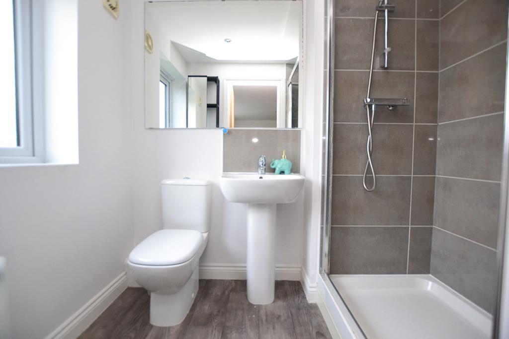 Three piece suite consisting of wc, basin and shower. Partially tiled and hard flooring