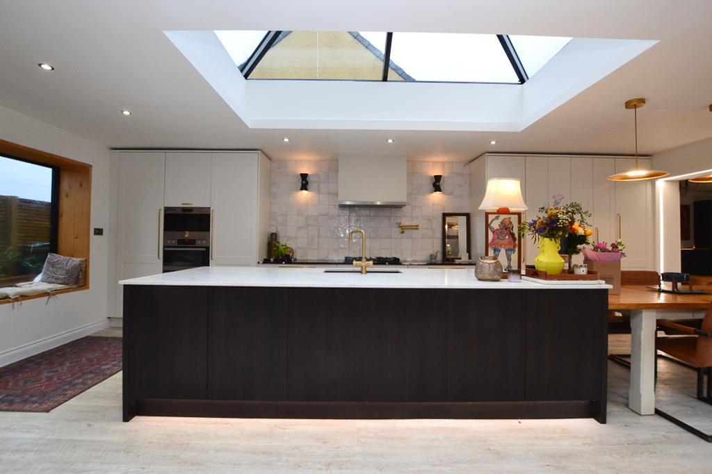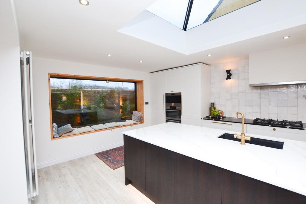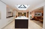 23' 9'' x 13' 8'' (7.24m x 4.2m) Stunning luxurious bespoke fitted kitchen a blend of high quality materials, custom craftsmanship thoughtfully designed blending functionality with elegance. A range of wall, drawer and base units including an island finished off with quartz worktops and gold accents. A full range of fitted appliances. Skylight above kitchen island. Spotlights and luxury flooring, partially tiled walls.