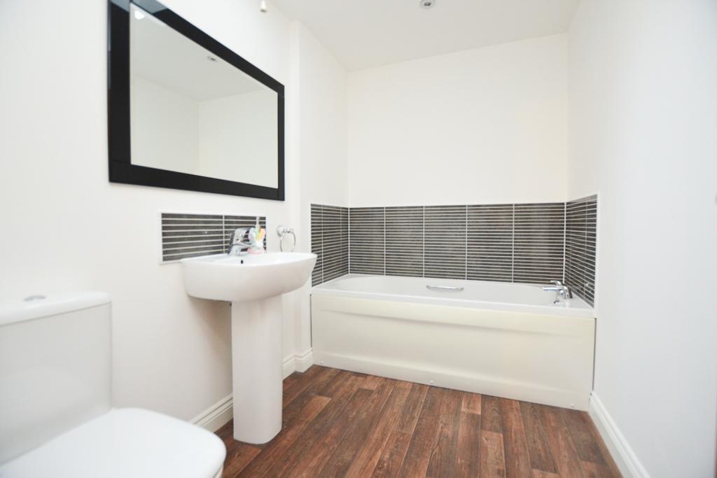 5' 11'' x 8' 6'' (1.82m x 2.6m) Three piece suite consisting of panelled bath, wc and basin. Partially tiled and hard flooring.